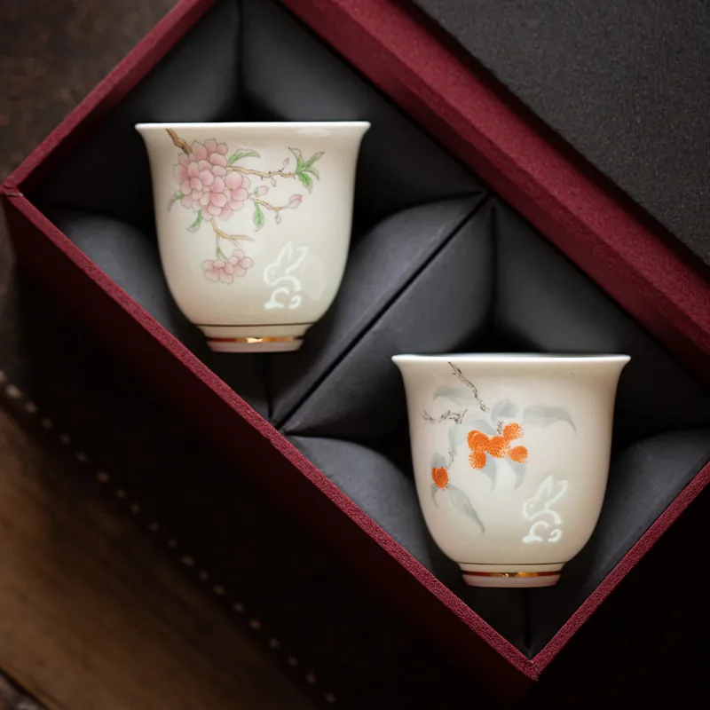 Bulk White Porcelain Floral Tea Tasting Cup Gongfu Host Cup Gift Box 13