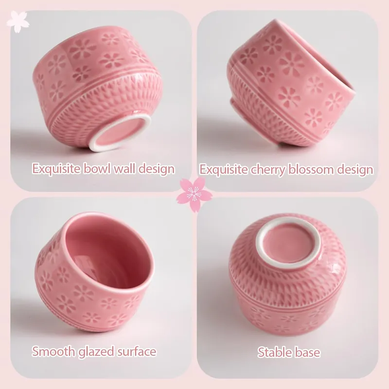 Handcrafted Ceramic Japanese Matcha Tea Cup 240ml Cherry Blossom Pink 11