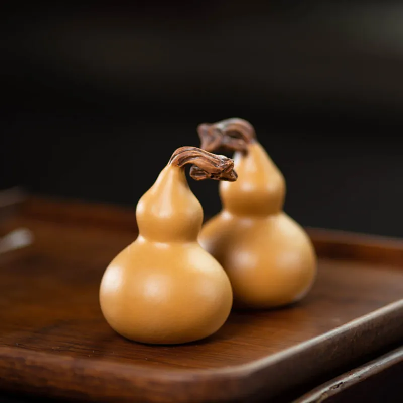 Handmade Yixing Zisha Gourd Tea Pet Sculpture Custom Tea Table Decor