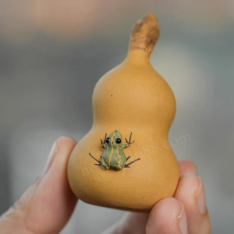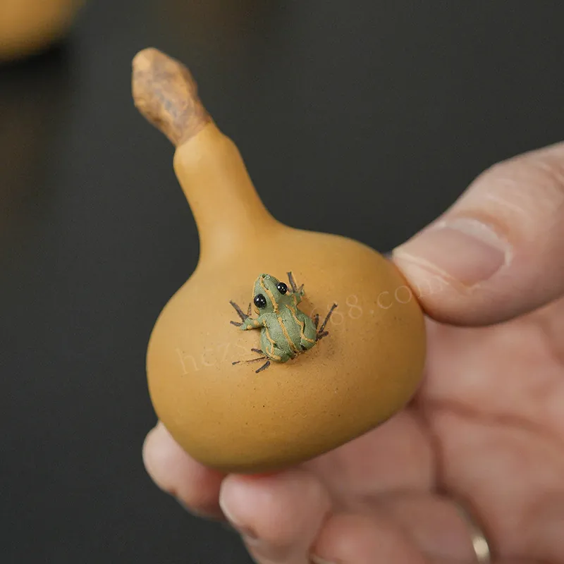 Handmade Yixing zisha tea pet in a gourd frog design adds an interactive touch to Gongfu tea service, with a喷水 feature for engaging tea table display. Suitable for Wholesale and Bulk orders, it’s a practical add-on for tea shops, gift retailers, and commercial teaware assortments.