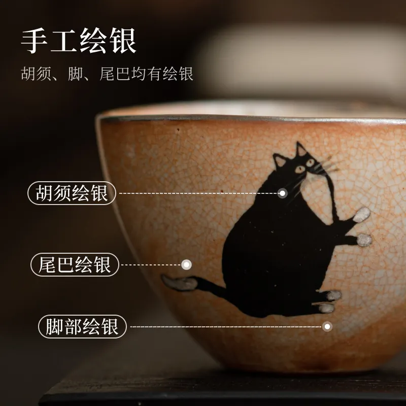 Japanese-style Shino ceramic fairness pitcher with a cat design, made for smooth tea sharing in Gongfu service. The handmade retro look suits retail shelves, while the practical pouring shape supports wholesale, bulk, and commercial teaware programs for tea shops, cafes, and gift stores.