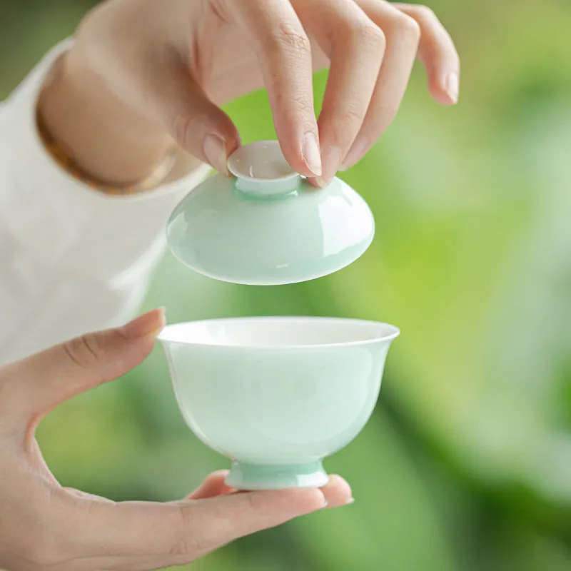 Handmade ceramic gaiwan with a solid-color glaze and thin-wall body, designed for modern Gongfu tea service. The practical shape stays comfortable to hold while brewing, making it a smart Wholesale or Bulk option for tea shops, cafes, and retail teaware collections.