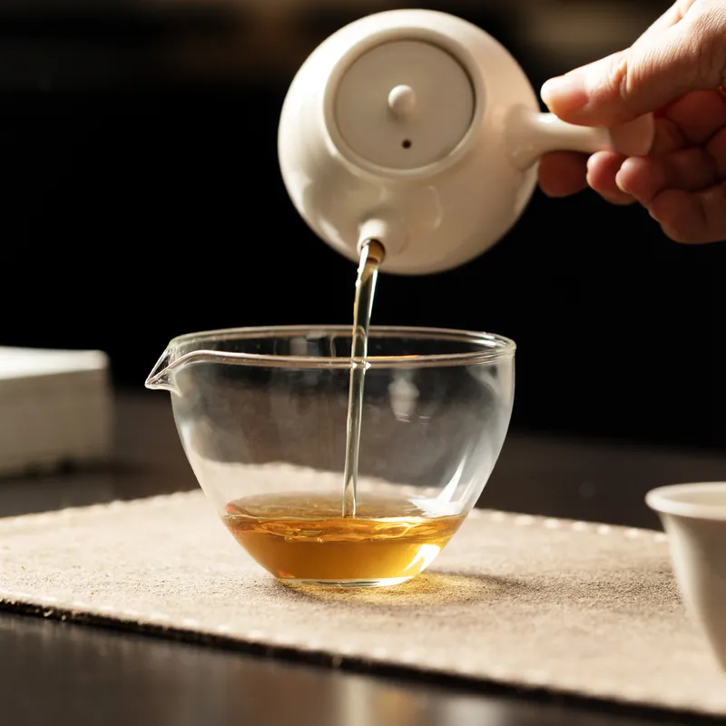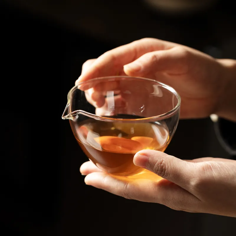 Built for wholesale tea service, this thickened high-borosilicate glass fairness pitcher offers clear visibility and reliable heat resistance for daily commercial use. The transparent tea sharing cup helps pour tea evenly, making it a practical teaware accessory for cafes, tea shops, and retail buyers sourcing in bulk.